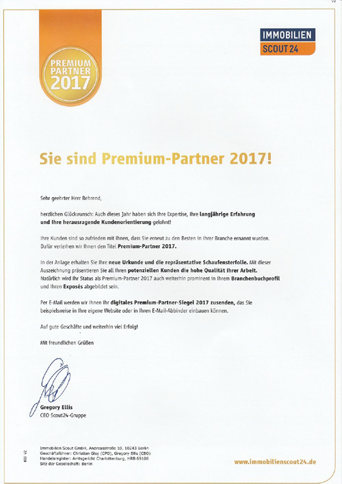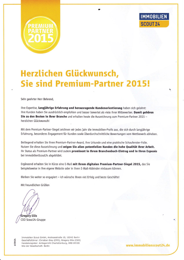 Zertifikat Halbjahresreport 1/2013 Immobilienscout 24.
